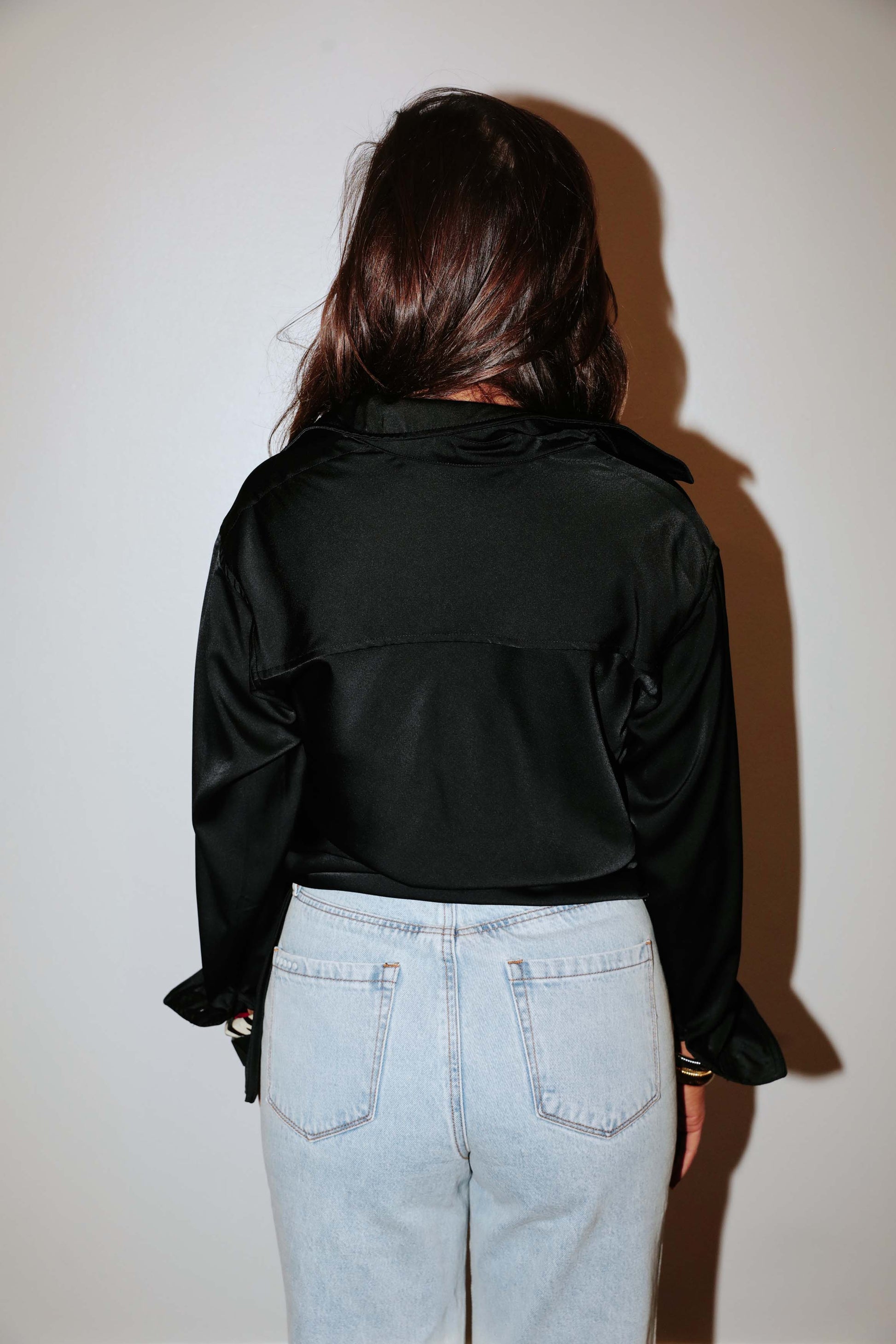 A satin button-down is a closet staple. Pair with any bottoms for an effortlessly chic look!